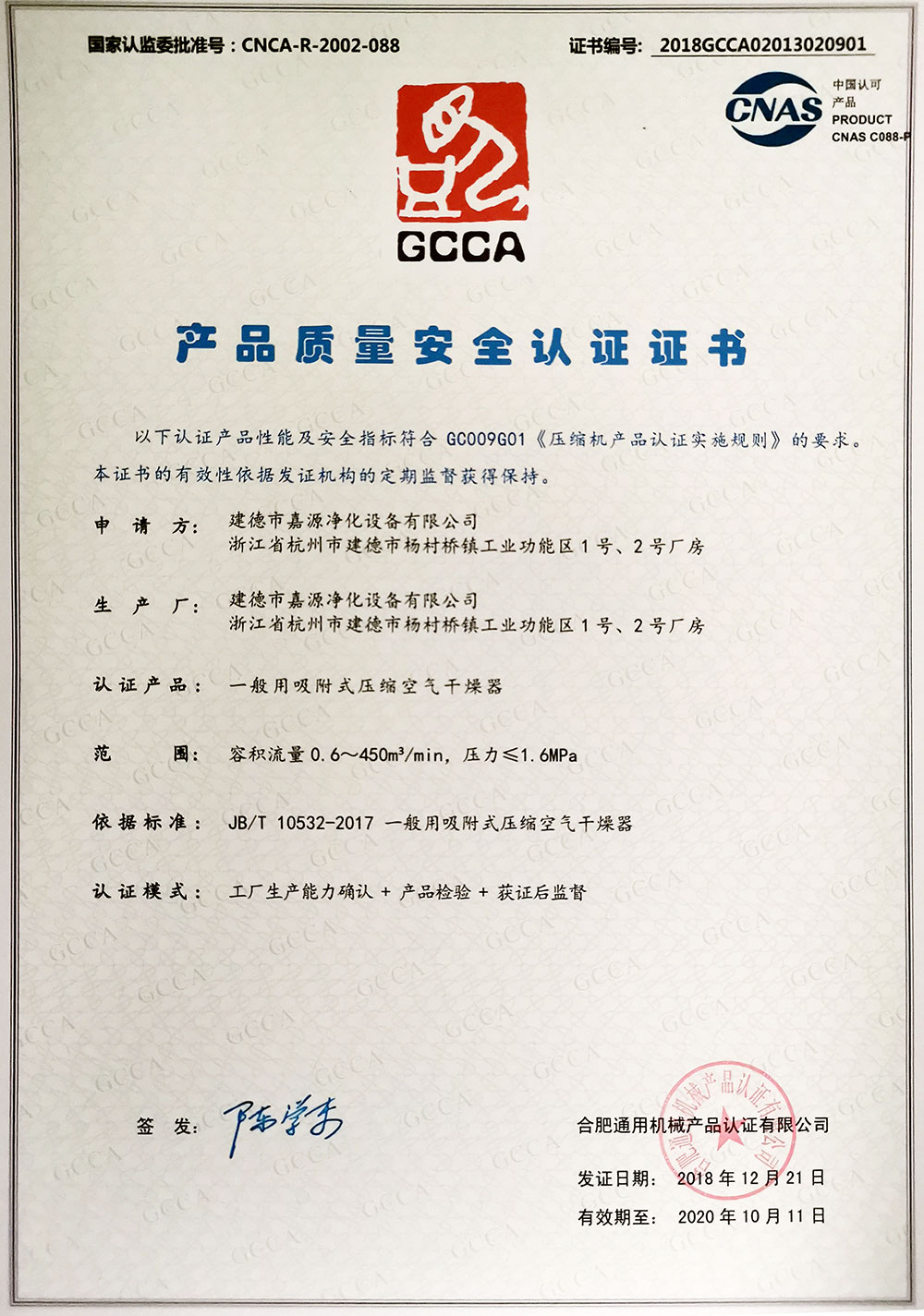 產(chǎn)品質(zhì)量安全認(rèn)證證書