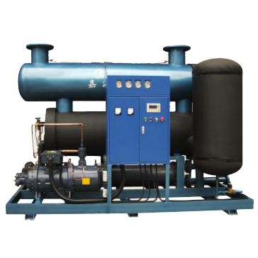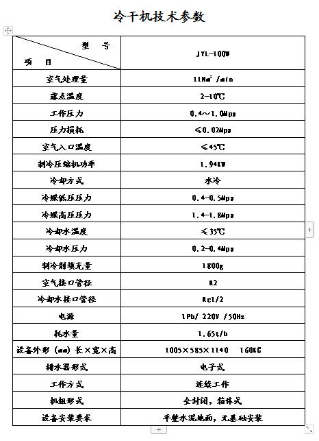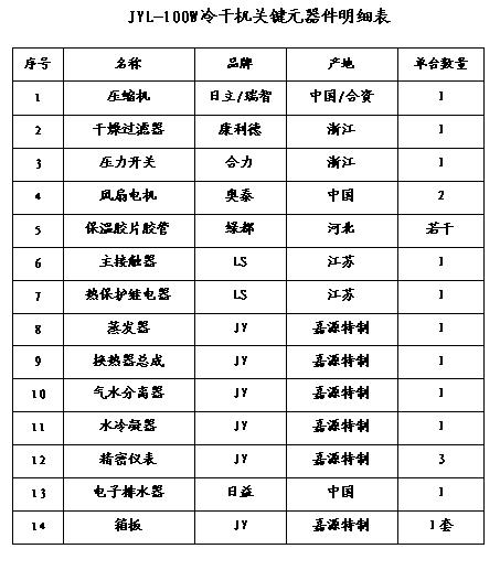 結(jié)構(gòu)冷凍式干燥機本質(zhì)上是一種熱交換設(shè)備,任何型式的冷凍式干燥機都是由空氣熱交換系統(tǒng)、制冷系統(tǒng)、氣水分離系統(tǒng)及電氣控制系統(tǒng)等部分組成。制冷系統(tǒng)由冷媒壓縮機、蒸發(fā)器、冷凝器及節(jié)流組件(毛細管或膨脹閥)等組成。含有大量水蒸汽的壓縮空氣主要在蒸發(fā)器里完成汽—液冷凝相變,在氣水分離器里完成液態(tài)水的凝聚與排出,從而獲得干燥的壓縮空氣。所以制冷系統(tǒng)的工作狀況直接決定了冷凍式干燥機的運行情況,而氣水分離器的結(jié)構(gòu)與效率對成品氣的干燥程度(用壓力露點來表示)有至關(guān)重要的影響。空氣熱交換器的設(shè)計關(guān)系到冷凍式干燥機的節(jié)能運行,并使壓縮空氣成品氣不致于在機器出口管道內(nèi)結(jié)露。