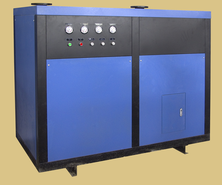 概述冷凍式干燥機是利用冷凍原理制成的壓縮空氣除水凈化設(shè)備,來自管網(wǎng)上游含有大量飽和水汽的壓縮空氣經(jīng)過冷卻處理后,絕大部分水蒸汽冷凝成液態(tài)水滴,經(jīng)氣水分離后被除去,所獲的干燥壓縮空氣能夠滿足絕大部分工業(yè)的需要與吸附式干燥機不同的是,冷凍式干燥機在除水過程中,能順便除去壓縮空氣中的一部分油霧。它對壓縮空氣的前置預(yù)處理要求沒吸附式干燥機那樣嚴(yán)格。冷凍干燥機由于工作可靠、管理方便、運行費用低廉而成為各行業(yè)空壓站房凈化設(shè)備的首選機種。